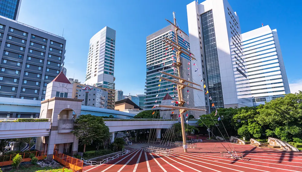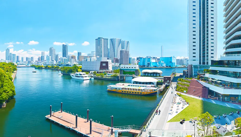 東京湾に注ぐ隅田川の河口近くに位置する竹芝は、伊豆・小笠原の島々へ向かう客船や東京湾のクルーズ船が発着する海の玄関口です。近くにある旧芝離宮恩賜庭園や浜離宮恩賜庭園、東京湾が一望できる空中遊歩道や桟橋などの絶景スポットも見どころの一つ。近年は新たな施設が次々に誕生しており、開放的な眺望と一緒にグルメやショッピングも楽しむことができます。