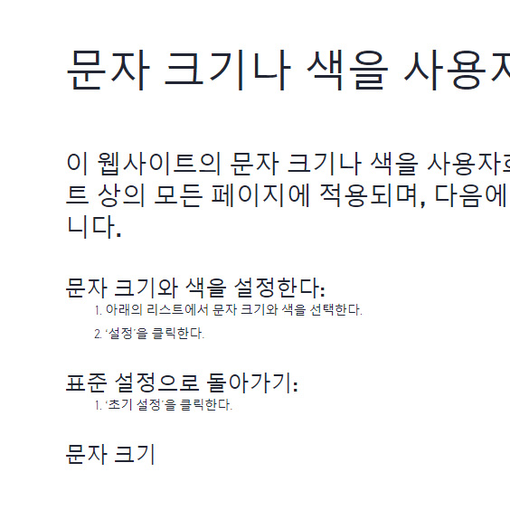 이 웹사이트의 문자 크기나 색을 사용자화할 수 있습니다. 선택한 문자 크기와 색은 이 웹사이트 상의 모든 페이지에 적용되며, 다음에 이 웹사이트를 방문했을 때도 동일한 설정이 적용됩니다.