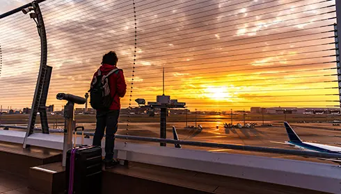 하네다 공항 제3터미널(국제선) 전망대에서 아침 해를 보러 일찍 일어나 보세요. 맑은 아침 공기를 마시며 이제 막 잠에서 깨어난 풋풋한 도쿄 거리로 모험을 떠납니다.