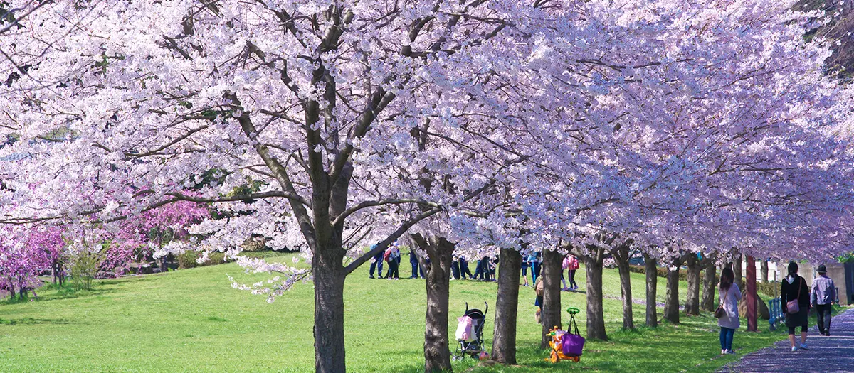 가타쿠라죠 성 유적 공원에서 연못 주위를 산책하거나 옛 성의 자취를 찾아보십시오. 3월 하순부터 4월 초순에는 언덕 위의 벚나무에 벚꽃이 활짝 핍니다.