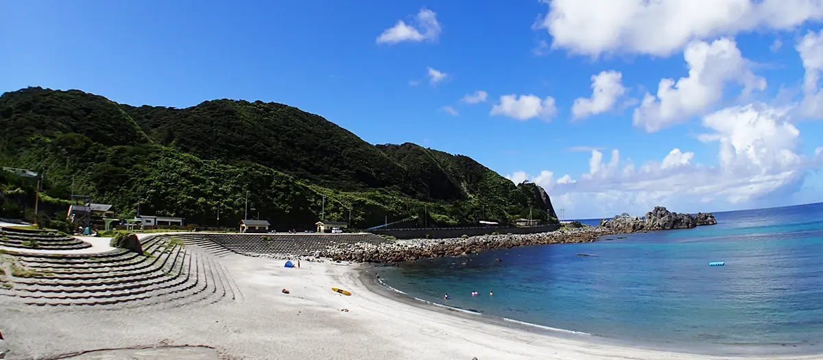 고즈시마 섬 사와지리 만에는 후미 형태의 바다가 있습니다. 해수욕을 즐기면서 지낼 수 있습니다.