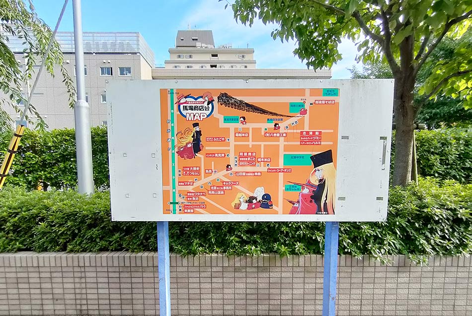 메텔과 철이, 마쓰모토 레이지 씨가 직접 그린 캐릭터 '우피'가 있는 상점가