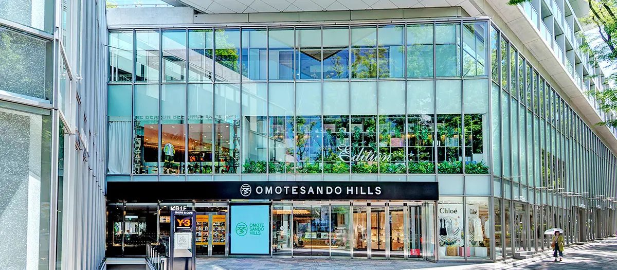 2006년에 개업한 오모테산도 힐즈의 개발은 역사적으로 중요한 거주지역을 철거하고 인근 지역을 상업화할 필요가 있었기 때문에 수많은 논란을 일으켰습니다. 10년 이상이 지난 후 이 복합시설은 Louis Vuitton과 Dior 등의 거점 지점과도 가까워 인근 지역에서도 유명한 중요한 시설이 되었습니다. 상업 구역은 본관, 서관, 도준칸 등 3개 건물로 이루어져 있습니다. 본관 중앙에는 6층 높이의 통층 공간 주위에 오모테산도 언덕길과 거의 같은 경사의 나선형 언덕길 '스파이럴 슬로프'가 정비되어 있습니다.
