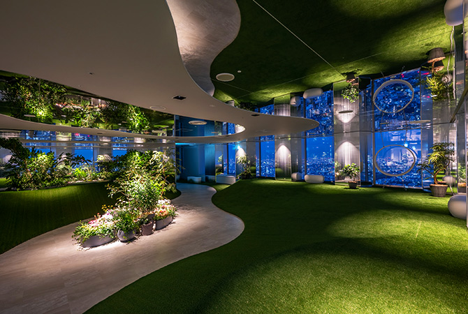지하 1층에서 지상 60층까지 1분당 600m 속도로 오르내리는 ‘샤이닝 엘리베이터’를 타면 불과 35초 만에 전망대에 도착합니다. 해발 251m 높이에 360도 대파노라마가 펼쳐집니다. ‘365일 언제나 즐길 수 있는 공원’을 테마로 ‘새로운 조망 체험을 제공하는 하늘공원’을 컨셉으로 한 선샤인 60 전망대 덴보파크. 한 번 가면 또 가고 싶어지는 편안하고 개방감 넘치는 공원 스타일 시설입니다.