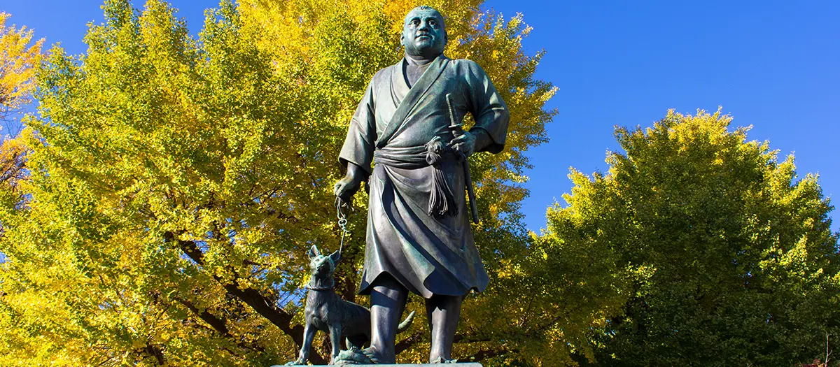우에노 공원 입구 가까이에 개와 함께 서있는 남성의 멋진 동상이 후세에 그 인물의 이름을 남기고 있습니다. 이 동상은 일본에서 매우 영향력이 있었던 무사 중 한 명인 전설의 사무라이 사이고 다카노리의 동상입니다. 흔히 '최후의 진정한 사무라이'라 불리고 있습니다. 사이고 다카노리 동상은 우에노의 상징적인 랜드마크입니다.