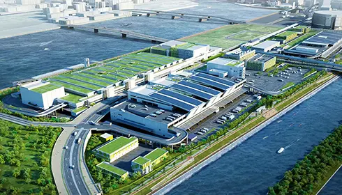 어시장은 도요스로 이전해 2018년 10월 11일에 개업했습니다. 도요스 어시장에서는 견학자용 통로나 견학자 데크에서 다랑어 경매 과정을 들여다보거나 39개나 있는 음식점에서 음식을 즐길 수 있습니다. 수산물 중간도매장 건물에는 70개가 넘는 상점이 늘어서 있습니다. 된장이나 김, 건어물, 일본 부엌칼부터 여행 기념품까지 없는 게 없습니다.