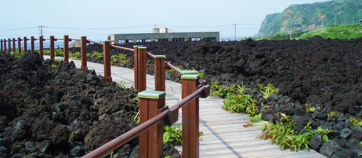 미야케지마 섬의 바위 투성이 경치는 섬 중앙에 위치한 활화산, 오야마 산의 거듭된 분화로 형성되었습니다. 1983년에 분화된 용암류로 매몰된 아코 초중교 터를 분화 당시의 상태로 볼 수 있습니다.화산 체험 산책로를 걸으면 미야케지마 섬의 화산이 낳은 경치와, 이 엄격한 지형에서 계속 생존하는 놀라운 식물과 동물을 둘러볼 수 있습니다.