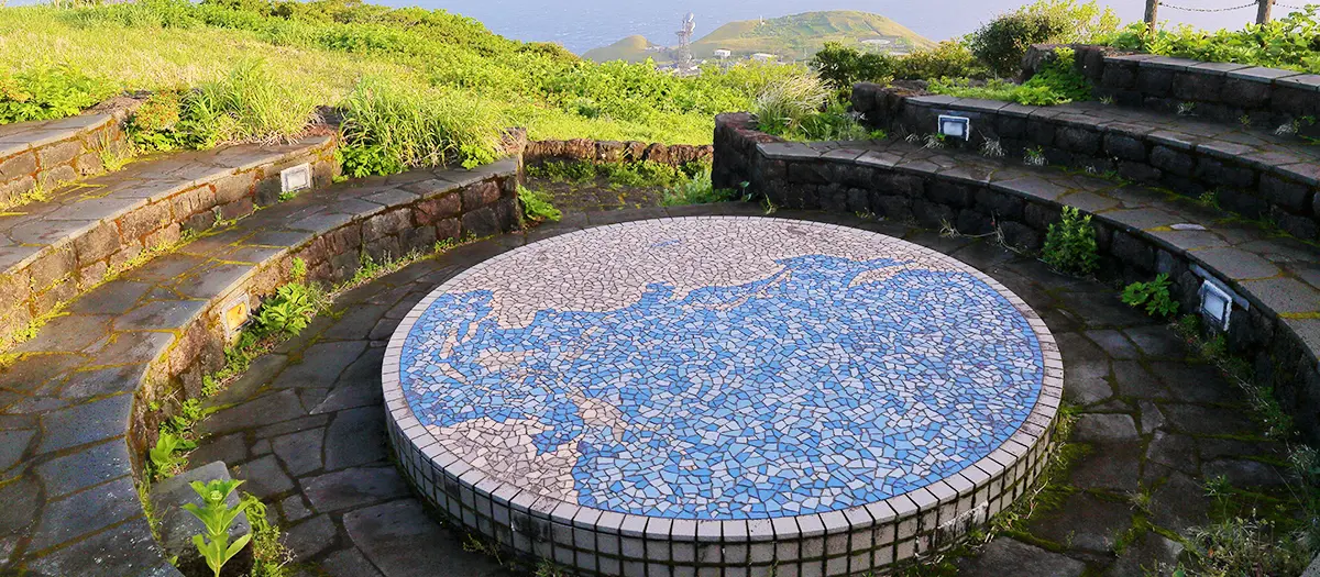 400미터 높이에 있는 오야마 전망공원은 아오가시마 섬에서 가장 높은 장소 중 하나로, 아오가시마 섬의 360도 전망을 즐길 수 있는 장소입니다. 아오가시마 섬의 대부분을 형성하는 칼데라의 중심, 마루야마 산(223미터)을 내려다보세요.