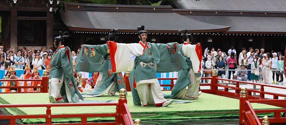 도쿄의 중심부에 있으면서도 거대한 숲과 풍요로운 자연으로 둘러싸여 있는 메이지진구 신사는 2020년에 진좌 100주년을 맞이했습니다. 이 신사는 메이지 천황과 황후 쇼켄 황태후의 영혼을 모시고 있습니다. 4월 하순부터 5월 초순에 걸쳐 열리는 ‘봄의 대제’에서는 두 제신의 영혼을 기리는 다양한 전통예능이 봉납됩니다.