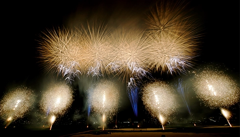 1만 4,000발의 불꽃을 쏘아올리는 에도가와구 불꽃놀이 축제. 2025년은 서로 다른 7개의 테마를 바탕으로 각각의 이미지에 맞춘 BGM을 틀면서 밤하늘을 아름다운 불꽃으로 장식합니다. 에도가와 명물로 유명한 5초 1,000발의 오프닝, 일본 최대급인 후지의 거대 불꽃, 클라이맥스를 장식하는 ‘질풍노도의 골드 가무로’는 압권입니다. 대회 50주년의 하이라이트 기획으로서 에도가와 명물 ‘후지의 거대 장치’가 ‘가장 높은 산 모양 장치 불꽃’으로 기네스 세계기록®에 도전합니다.