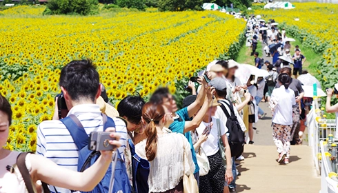 약 2만 4,000평방미터에 달하는 광대한 농지에 약 10만 그루의 해바라기가 커다란 꽃을 피우고, 매년 많은 사람들이 방문합니다. 기간 중에는 사진 콘테스트 등의 이벤트가 열리며, 인근 밭에서 수확한 신선한 야채나 해바라기 꽃 판매 등이 실시됩니다.