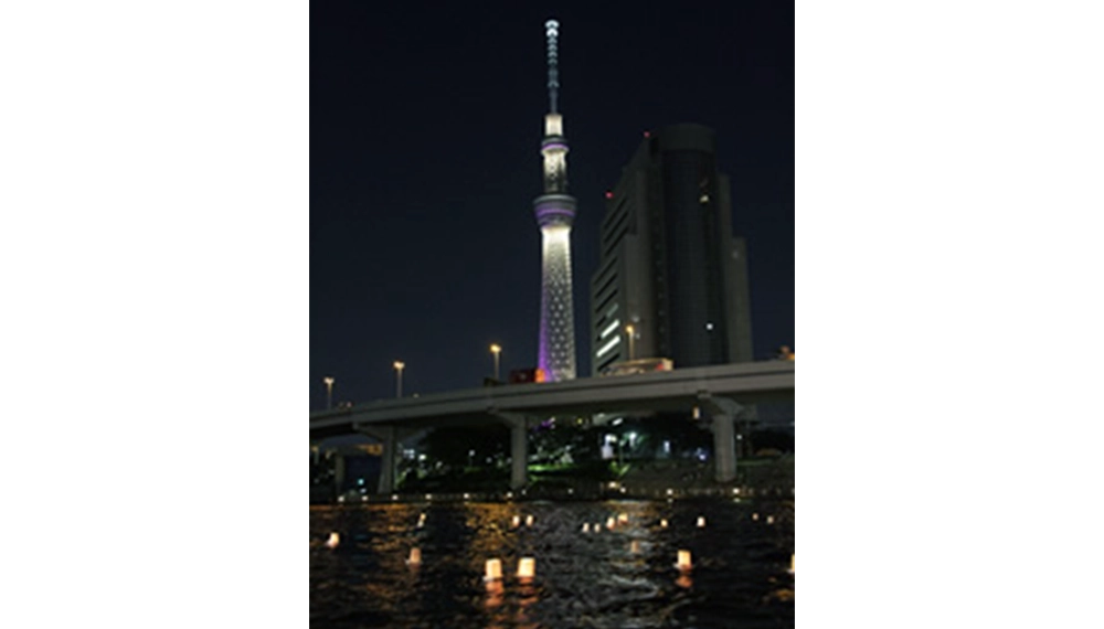 여름철 전통행사인 등불 띄우기 때는 사람들이 소원을 담아 등불을 강에 띄워 흘려보냅니다. 아사쿠사에서는 스미다 공원에서 열립니다. 아즈마바시 다리 근처의 스미다가와 친수 테라스에서 스미다가와 강으로 등불을 띄워 보냅니다. 등불을 원하시는 분은 아사쿠사 관광연맹 또는 스미다구 관광협회에 신청해 주십시오.