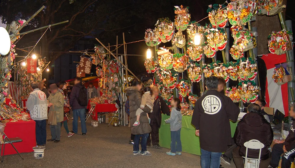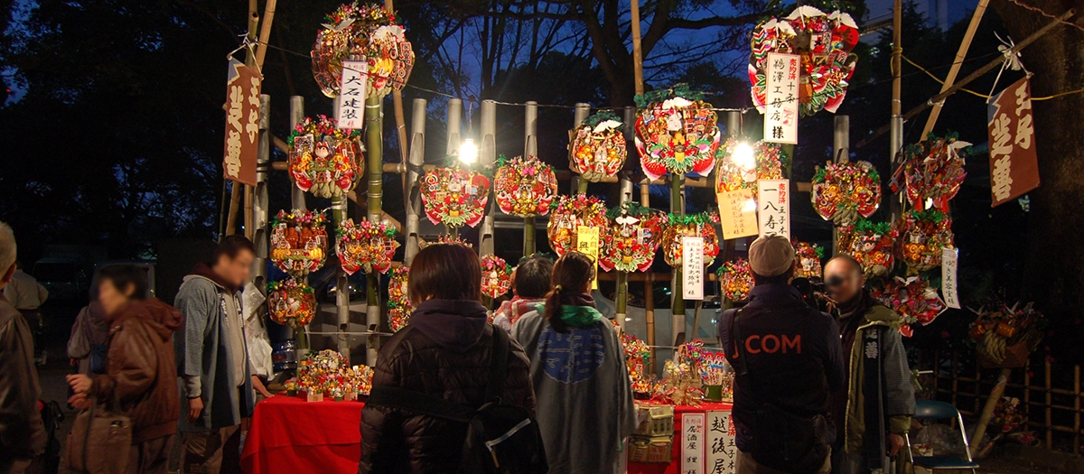 도리노이치 시장은 보통 11월에 개최됩니다. 이 시장에서는 ‘구마데’라 불리는 행운의 대나무 갈퀴 장식물이 판매됩니다. 하지만 일부 절이나 신사에서는 12월에 도리노이치 시장을 개최합니다. 그중 하나가 기타구에 있는 오지 신사입니다.