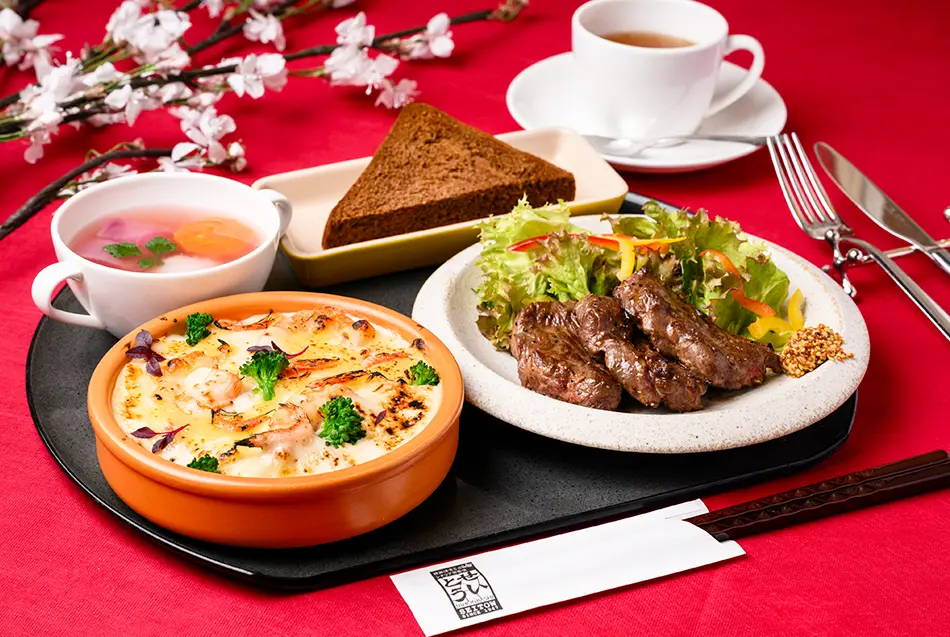 니혼바시 지역의 점포들이 "봄"과 "벚꽃"을 테마로 봄 한정 메뉴를 전개하는 ‘벚꽃 메뉴’. 마음까지 봄으로 가득 채워주는 스위트를 비롯해 경식, 도시락, 상품 등 다양한 즐거움을 선사해 드립니다.