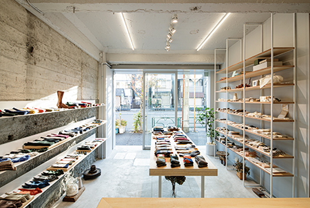 在yahae kiyosumi的店面裡頭,陳列著許多以永續性為訴求的襪子,而這些襪子均是出自其自有品牌「yahae」。Yahae是一家位在奈良縣的老字號襪子製造商,由於是將棉、氂牛纖維、羊駝毛等優質的天然材質以傳統工法進行編織,並且不使用任何化學染料,因此其製作出的男襪與女襪既舒適又好穿。