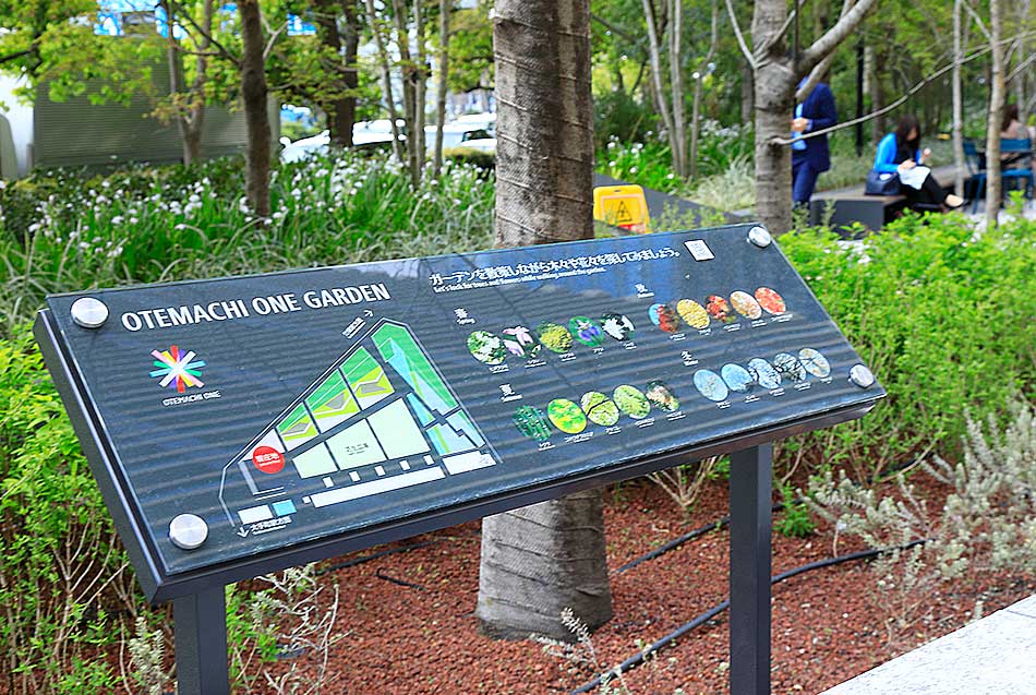 一樓大廳妝點著各式植栽,與東京地下鐵大手町站連結的地下樓層,還有大面積植生牆的虛實結合,歡迎著上班族與世界各地旅客的造訪。此外,2022年開放的「Otemachi One Garden」更是讓綠意延伸至鄰近的皇居。