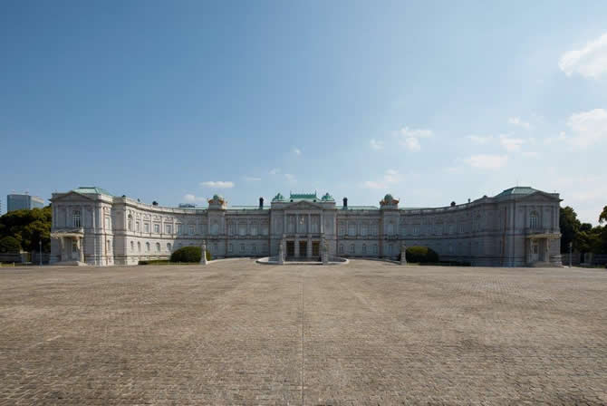 這座壯麗的宮殿建於1909年,是日本政府擁有的2座迎賓館之一,由於採用歐洲新巴洛克建築風格,外觀與英國白金漢宮十分相似。設計者為英國建築師喬賽亞‧康德之弟子片山東熊,他曾設計東京都內的許多公共建築,作為明治時代日本西化的象徵而廣為人知。