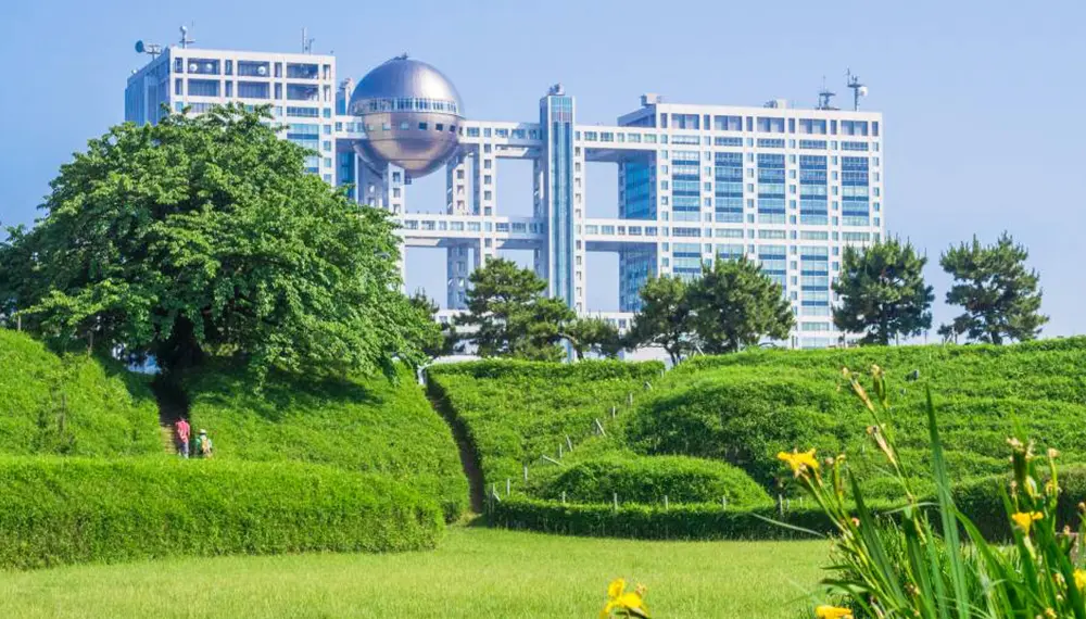 位於正對東京彩虹大橋的人工島上,台場海濱公園是適合全家出遊的休閒景點。