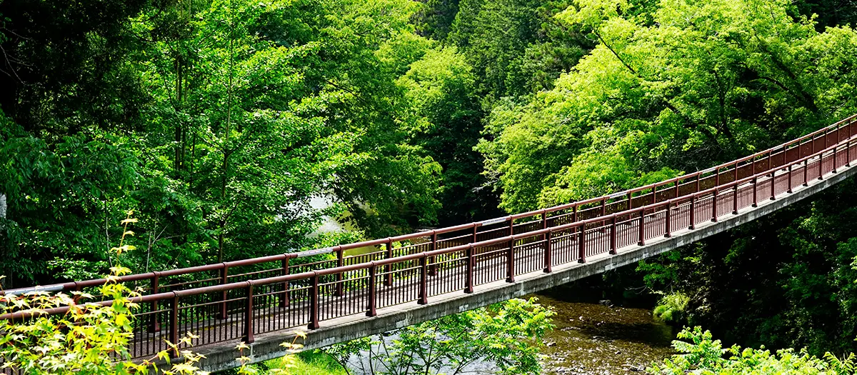 石舟橋位在秩父多摩甲斐國立公園中,是座橫跨在秋川上的橋,全長96公尺(315英呎)。從橋上看秋川溪谷,絕對是名符其實的絕美景緻。別忘了帶相機前往。如於11月中至12月初之間前往,更可欣賞到令人嘆為觀止的紅葉。結束橋上的漫步後,再前往步行距離僅需5分鐘的秋川溪谷 瀨音之湯,以優雅的溫泉為您的旅途畫下完美句點吧。