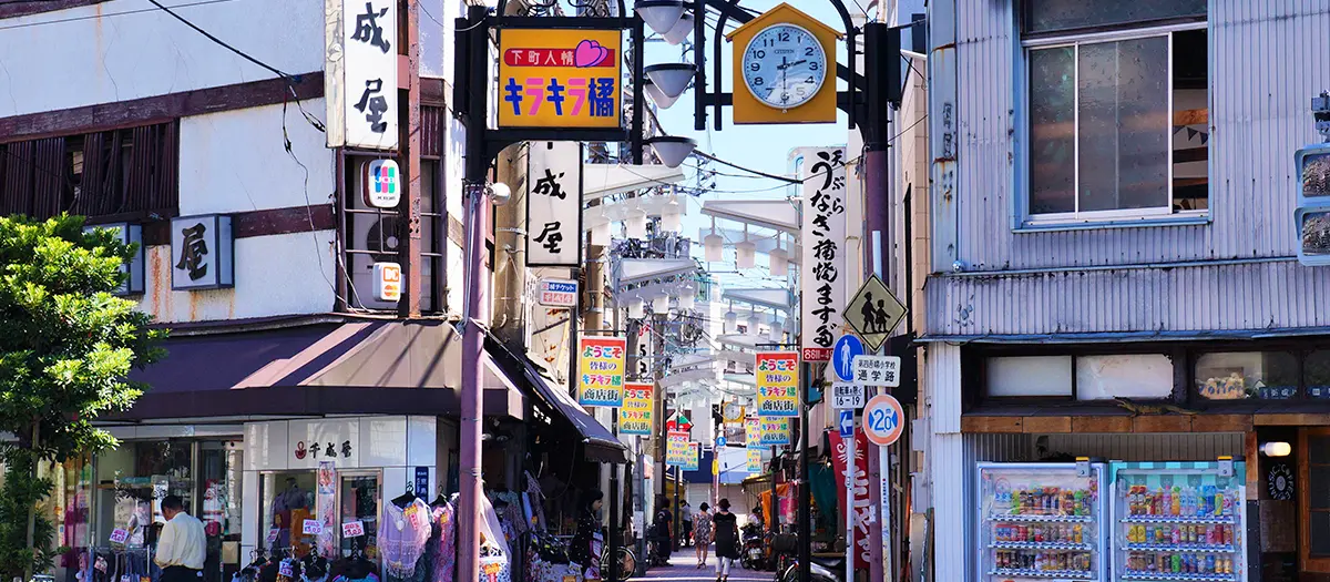 由東京晴空塔往東走,有個下町人情KIRAKIRA橘商店街。在這懷舊的商店街中有90家商店櫛比鱗次,其大部分是食品相關的店家。每個月第四個週日是早市,7月7日則會配合七夕祭掛上色彩鮮豔的裝飾品,不妨在這些時候前來走走。