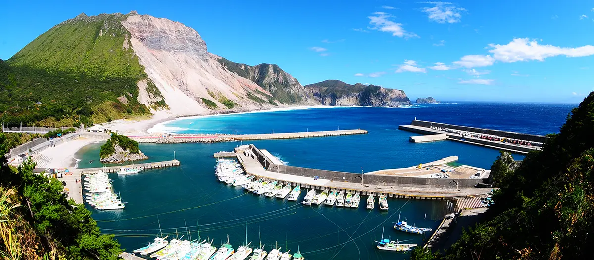 多幸灣位於神津島東方,擁有被選入東京名湧水57選的多幸湧水,是神津島水源豐富的標誌性景點。丸島所在地區由於海浪平靜,是適合帶娃出遊的絕佳游泳景點。登上瞭望臺,眺望多幸灣與天上山美麗的景色吧。向下俯望還可見到飄浮於港灣的一艘艘漁船。
