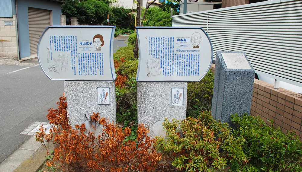 自大正時代(1912~26)末期橫跨昭和時代(1926~89)初期,尾崎士郎、宇野千代、北原白秋、小林古徑等眾多文士及藝術家皆在馬込生活過。為了讓參訪者可以踏著文士們的足跡巡覽,在馬込、山王、中央交界處的故居遺址附近設有各文士的解說板。