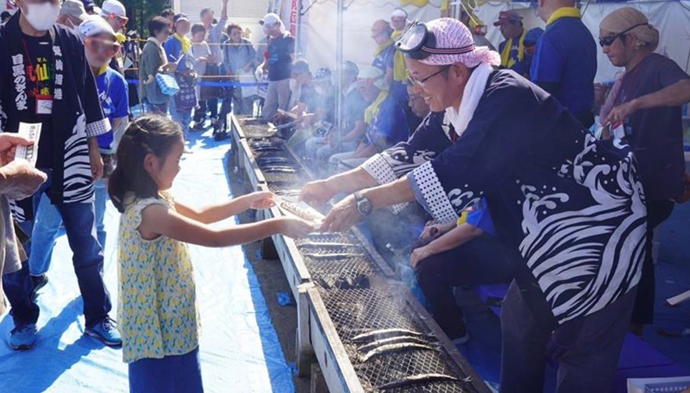 源於秋刀魚的此祭典非常受歡迎。每年,會將從目黑區友好城市的氣仙沼市送來的秋刀魚進行炭烤,為了品嚐這一美食,會有許多來賓在目黑川沿線排隊。烤秋刀魚會再附上大分縣產的酸橙。最棒的是這些烤秋刀魚會免費分發給遊客享用。※須提前申請。