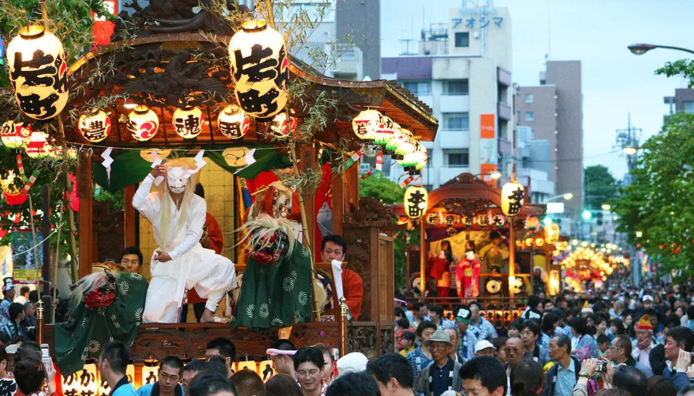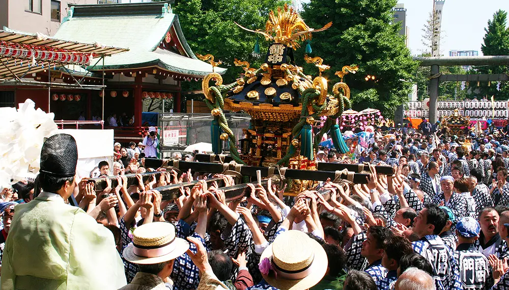 神田明神的神田祭是「日本三大祭典」,也是「江戶三大祭典」之一,其起源據傳可回溯至8世紀。「本祭」(正式祭典)間隔一年在奇數年舉行,偶數年則會舉辦縮小規模的「陰祭」。由於陰祭僅舉行儀式,因此民眾無法參加。本祭時人們抬著神轎在東京街頭列隊行進,令人印象深刻。「本祭」是2年才能體驗1次的寶貴祭典。