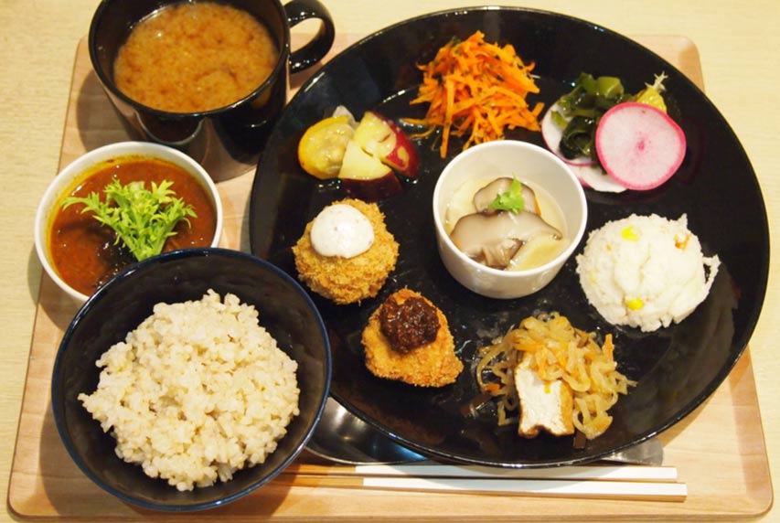 店內料理使用大量的當令嚴選食蔬,例如「佛陀飯」就加入了堅果等色彩繽紛的食材,能夠攝取豐富的植物性蛋白質;除此之外,也有使用了日本酒粕的餐點,或是以楓糖漿製成的照燒料理。不過需要留意的是,這裡也提供有使用魚、肉類製成的精力料理,因此並非所有餐點都是精進料理。