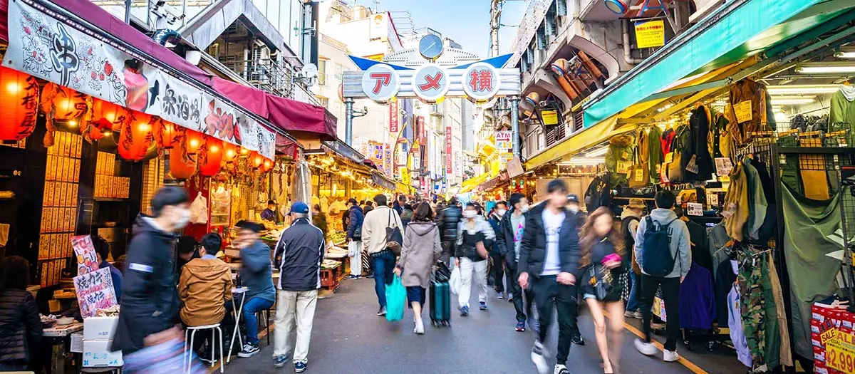 สนับสนุนรูปภาพ:(มูลนิธิเพื่อสาธารณประโยชน์) สมาคมสวนสัตว์โตเกียว“อาเมโยโกะ” มีจุดเริ่มต้นมาจากตลาดมืดที่ขายสินค้าจากอเมริกาหลังสิ้นสุดสงคราม ตั้งอยู่ใกล้สถานีอุเอโนะ และจนถึงปัจจุบันก็ยังมีร้านค้าที่จำหน่ายสินค้าจากต่างประเทศหลงเหลืออยู่ ย่านร้านค้าที่ทอดยาว 500 เมตรแห่งนี้คึกคักไปด้วยผู้คนและขยายตัวจนมีขนาดใหญ่ และเต็มไปด้วยพ่อค้าแม่ค้าจำนวนมากที่ต่างส่งเสียงเรียกลูกค้าว่าอาหารสด เครื่องสำอาง เสื้อผ้าและเครื่องประดับของร้านตนที่มีราคาถูกกว่าที่อื่น หากนึกถึง “อาเมโยโกะ” สิ่งที่เป็นจุดเด่นของที่นี่ก็คือเสียงเรียกลูกค้าของพ่อค้าแม่ค้าซึ่งเปี่ยมไปด้วยความตั้งใจที่จะขายของให้ได้ก่อนใครและขายให้ได้มากกว่าร้านอื่นๆ นอกจากนั้นยังมีร้านค้าปลีกเฉพาะอย่างต่างๆ มากมาย เช่น ร้านขายชุดเครื่องแบบทหารและเครื่องประดับ รวมถึง “ตึกอาเมโยโกะเซ็นเตอร์” ซึ่งคุณสามารถเลือกซื้อสมุนไพรและเครื่องเทศหลายหลายชนิดได้ที่นี่ มีร้านขายอาหารแผงลอย ร้านอาหาร ร้านขายกับข้าว และของว่างอื่นๆ มากมายให้เลือกซื้อทานระหว่างเดินเที่ยว ซึ่งทั้งราคาถูกและอร่อย