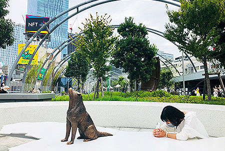 นอกจากนี้ หากกล่าวถึงจุดถ่ายรูปที่มีความเกี่ยวข้องกับชิบุยะมากที่สุด ก็ต้องนึกถึง “SHIBUYA HACHI COMPASS” ผลงานของศิลปินชาวญี่ปุ่นยาสุฮิโระ ซูซูกิ คุณสามารถนั่งบนเก้าอี้สีขาวตัวใหญ่ที่จำลองเป็นรูปร่างของเขตชิบุยะ พร้อมกับชมท้องฟ้าพร้อมกับสุนัขผู้ซื่อสัตย์ฮาจิโกะได้ ระลึกถึงเจ้านายของสุนัขฮาจิโกะหรือศาสตราจารย์อุเอโนะที่ได้กลายเป็นดวงดาว และสัมผัสถึงความรู้สึกระหว่างคนกับสัตว์ที่ไร้ซึ่งพรมแดน ในตอนกลางคืนกลุ่มดาวจักรราศีจะปรากฏขึ้นด้านหลังของฮาจิโกะ