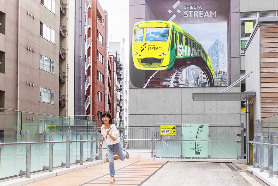 ข้ามถนนไปยัง “SHIBUYA STREAM” ซึ่งอยู่ทางฝั่งใต้ของสถานีชิบุยะ หากคุณเดินผ่านทางเดินบนชั้นสองของอาคารไปจนสุดทางก็จะได้พบกับรถไฟที่มีเพียงขบวนเดียวในโลก “ขบวนรถไฟ SHIBUYA STREAM” เพลิดเพลินไปกับ “ทริกอาร์ต” สามารถสนุกได้ตามต้องการไม่ว่าจะเป็น วิ่งตามรถไฟ หรือโบกมือจากรางรถไฟ