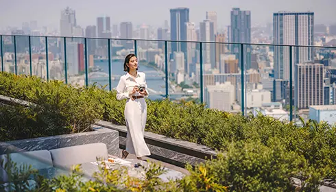 โรงแรมสุดหรู “Fairmont Tokyo” ซึ่งตั้งอยู่ชั้นบนสุด ให้บริการคาเฟ่ ร้านอาหาร และระเบียงที่เปิดให้บุคคลทั่วไปเข้าใช้บริการได้ พร้อมวิวเส้นขอบฟ้าโตเกียวอันน่าทึ่ง นอกจากนี้ยังมีการสร้างท่าเรือเฉพาะภายในโรงแรม และมีแผนที่จะเปิดให้บริการประสบการณ์การล่องเรือร่วมกับ Fairmont Tokyo ในอนาคตโดยใช้ท่าเรือแห่งนี้ แม้ว่าย่านนี้จะเต็มไปด้วยบรรยากาศอันทันสมัย แต่ประวัติศาสตร์ก็อยู่ใกล้แค่เอื้อมเสมอ จากชั้นบน คุณสามารถสำรวจภูมิทัศน์อันอุดมสมบูรณ์ของเมือง เช่น สะพานสายรุ้งเรนโบว์บริดจ์ โตเกียวสกายทรี โตเกียวทาวเวอร์ สวนสาธารณะชิบะ วัดโซโจจิ และสวนคิวชิบาริกิว ซึ่งเคยเป็นพระราชวังหลวงที่มีประวัติศาสตร์กว่า 350 ปี จากนั้นก็กลับสู่ริมน้ำ - สามารถเพลิดเพลินกับประสบการณ์แบบนั้นได้ที่นี่