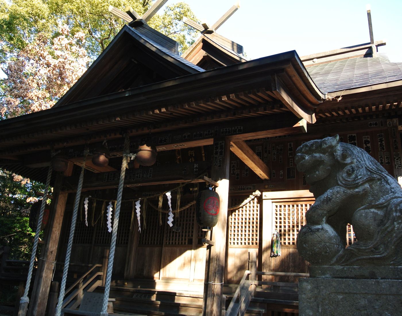 ศาลเจ้าแห่งนี้มีประวัติศาสตร์มากกว่า 1,000 ปี ช่วงวันที่ 28, 29 และ 30 กันยายนของทุกปีจะมีการจัดงานเทศกาลใหญ่ประจำปีของศาลเจ้า โดยจะมีขบวนแห่ศาลเจ้ารูปร่างหกเหลี่ยมขนาดใหญ่โตเดินไปตามเมืองทั้ง 5 แห่ง และการแสดงเชิดสิงโต