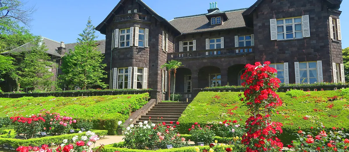 “สวนคิวฟูรูกาวะ” เคยเป็นคฤหาสน์ของฟูรูกาวะ โทราโนสุเกะ ผู้นำรุ่นที่สามของตระกูลฟูรูกาวะ สวนแห่งนี้มีเสน่ห์ที่ผสมผสานความเป็นญี่ปุ่นและตะวันตกไว้ได้อย่างลงตัว ใช้ประโยชน์จากพื้นที่ต่างระดับของเนินสูง โดยสร้างอาคารสไตล์ตะวันตกไว้บนเนิน, จัดสวนกุหลาบบนทางลาด, และจัดสวนญี่ปุ่นไว้บริเวณพื้นที่ด้านล่าง