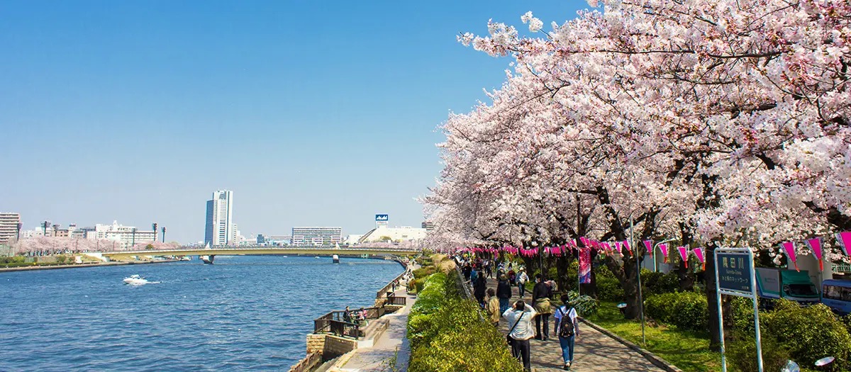 สวนสาธารณะซูมิดะที่ใช้เวลาเดินจากสถานีอาซากุสะประมาณ 2-3 นาที เมื่อมีการจัดงานอีเวนต์ชมดอกซากุระและการจุดพลุดอกไม้ไฟอันยิ่งใหญ่ประจำปี จะมีความครึกครื้นคึกคักเป็นพิเศษ นอกจากนี้ยังสามารถเดินเล่นที่ริมฝั่งแม่น้ำซูมิดะชมทัศนียภาพของโตเกียวสกายทรีไปพลางได้อีกด้วย