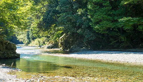 สามารถตกปลาและนำปลาที่ตกได้มาทำบาร์บีคิว วิวใบไม้แดงจากสะพานอิจิบูเนะที่พาดกลางหุบเขานั้นงดงามเป็นอย่างยิ่ง