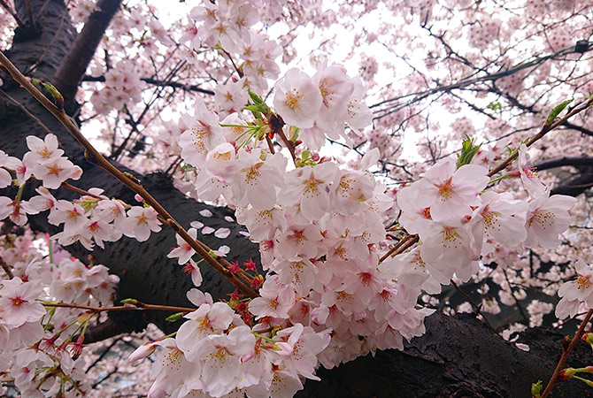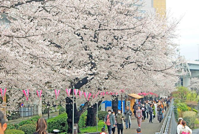 โดยเฉพาะทิวซากุระที่ทอดยาวเป็นระยะทางหนึ่งกิโลเมตรจากสะพานอาซึมะบาชิไปจนถึงสะพานซากุระบาชินั้นได้รับความนิยมเป็นพิเศษและดึงดูดนักท่องเที่ยวจำนวนมากมาเป็นเวลานานหลายศตวรรษ ในตอนกลางคืน ทิวต้นซากุระจะได้รับการประดับไฟไลท์อัพอย่างงดงาม ส่องสว่างควบคู่ไปกับโตเกียวสกายทรีที่สูงตระหง่าน อีกทั้งยังสามารถแวะชมบูธที่ดำเนินการโดยกลุ่มต่างๆ เช่น สมาคมเมืองในท้องถิ่น สมาคมร้านค้าที่มีชื่อเสียง รวมถึงร้านน้ำชาเกอิชาที่ดำเนินการโดยสมาคมมุโคจิมะโบกุเทอิด้วย นอกจากนี้ การเช่าเรือยากาตะบุเนะแบบเหมาลำเพื่อชมซากุระจากบนผืนน้ำก็ได้รับความนิยมเช่นกัน