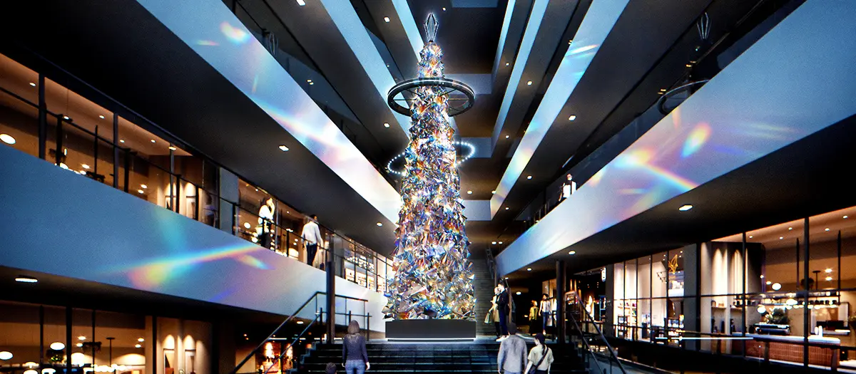 "OMOTESANDO HILLS CHRISTMAS TREE 2025" จะจัดขึ้นที่ห้างโอโมเตะซันโดฮิลส์ ตั้งแต่วันอังคารที่ 11 พฤศจิกายนไปจนถึงวันพฤหัสบดีที่ 25 ธันวาคม บริเวณบันไดใหญ่ของโถงอาคารหลัก มีต้นคริสต์มาสสูง 10 เมตรตั้งอยู่ ปริซึมหลายด้านส่องสว่างพื้นที่ระยิบระยับเจิดจ้า วงแหวนแห่งแสงก็เต้นรำอย่างร่าเริง รูปทรงหลายด้านและแสงจากปริซึมราว 1,000 ชิ้นนั้น นอกจากจะทำให้พื้นที่ทั้งหมดสว่างไสวด้วยแสงจากปริซึมที่เกิดจากการหักเหและการสะท้อนแสงแล้ว ยังมีการนำระบบจัดแสดงที่เคยเป็นที่กล่าวถึงอย่างมากในงานโอซาก้า-คันไซ เอ็กซ์โปมาใช้ โดยลูกบอล 48 ลูกจะเคลื่อนไหวเป็นจังหวะเข้ากับเสียงดนตรี ราวกับเป็นการวาดวงแหวนแห่งแสง