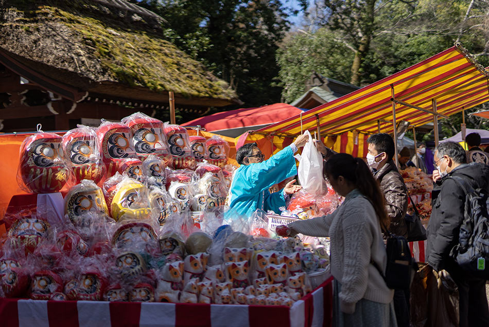 ทุก 1 ชั่วโมงตั้งแต่เวลา 10:00-16:00 น. จะมีพิธีสวดขอพรเพื่อขจัดปัดเป่าภัยร้ายและอธิษฐานให้ประสบความสำเร็จ ในเวลาประมาณ 14:00 น. จะมีพิธีกรรมถวายชาและขนมหวานแบบดั้งเดิมแก่พระกันซันไดชิ ภายในบริเวณวัด มีพระสงฆ์เขียนอักษรสันสกฤตลงบนตุ๊กตาดารุมะให้ได้ด้วย ตุ๊กตาดารุมะตัวใหม่จะเขียนด้วยตัวอักษรหนึ่งตัวซึ่งเป็นสัญลักษณ์ของการเริ่มต้นใหม่ ส่วนตุ๊กตาดารุมะตัวเก่าซึ่งทำหน้าที่เสร็จสิ้นแล้วก็จะเขียนด้วยตัวอักษรอีกตัวหนึ่ง