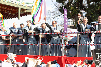 ศาลเจ้าคันดะเมียวจินเป็นศาลเจ้าที่มีประวัติศาสตร์ยาวนานราว 1,300 ปี ตั้งอยู่ในกรุงโตเกียว สำหรับงานเทศกาลเซ็ตสึบุน (เทศกาลปาถั่วไล่สิ่งชั่วร้าย) นั้นเริ่มต้นด้วยขบวนแห่ที่ประกอบไปด้วยอาคาโอนิ (ยักษ์สีแดง), อาโอโอนิ (ยักษ์สีน้ำเงิน), ไดโคกุซามะ (เทพแห่งความมั่งคั่ง), เอบิสุซามะ (เทพแห่งชาวประมงและการค้าขาย) และผู้คนที่ร่วมกันปาถั่วไปตามพื้นดิน