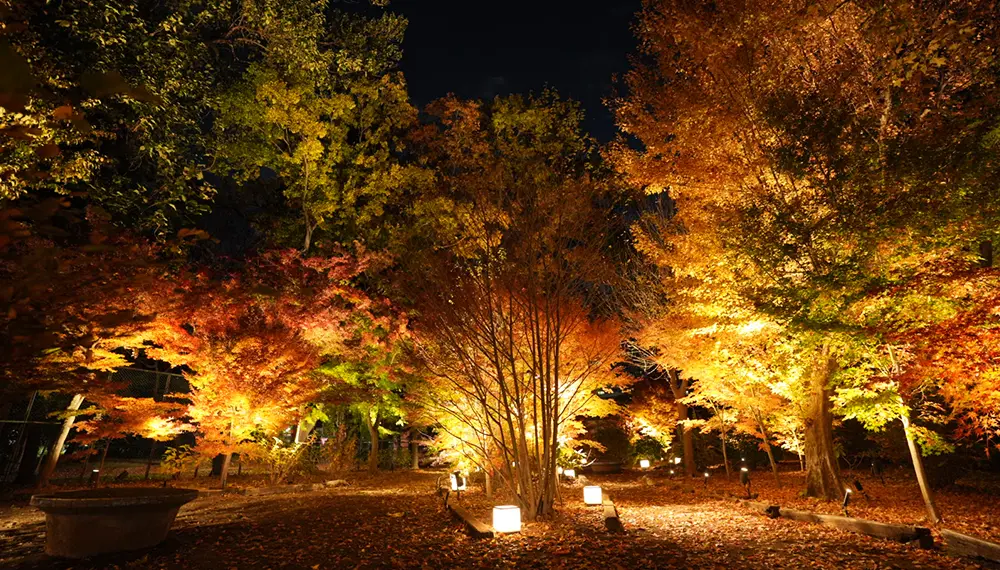 จะมีการจัดงานประดับไฟไลท์อัพใบไม้เปลี่ยนสี ณ สวนสาธารณะฮากิยามะในเมืองโคไดระ พื้นที่ซึ่งมีต้นเมเปิ้ลญี่ปุ่นมากกว่า 100 ต้นปรากฏในความมืดนั้นช่างงดงามยิ่งนัก สามารถสัมผัสความดื่มด่ำกับบรรยากาศได้โดยไม่ถูกรบกวนจากแสงไฟใดๆ เช่นไฟข้างถนน