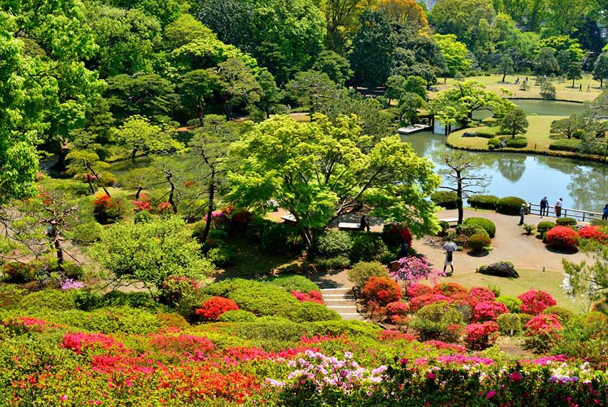 ช่วงที่สวยที่สุดของสวน คงจะเป็นฤดูใบไม้ผลิที่ดอกซากุระบานสะพรั่งเต็มที่ หรือไม่ก็ฤดูใบไม้ร่วงที่มีใบไม้เปลี่ยนสีสดใสของต้นเมเปิ้ลและต้นเซลโควาญี่ปุ่น ทั้งฤดูใบไม้ผลิและฤดูใบไม้ร่วงทางสวนจะขยายเวลาเปิดให้เข้าชมและมีไฟประดับไลท์อัพในตอนกลางคืน